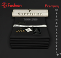 The fabric shown in your images is the Sapphire Premium Wash & Wear Boski (in Black), which typically comes in a standard cutting length, often around 4 meters for a complete suit.